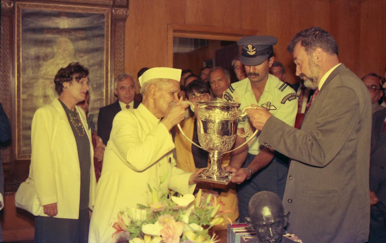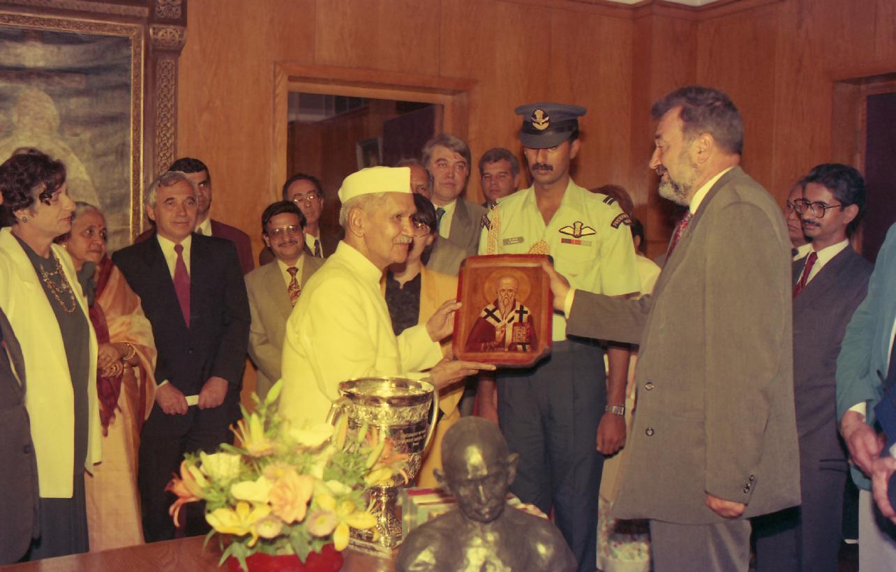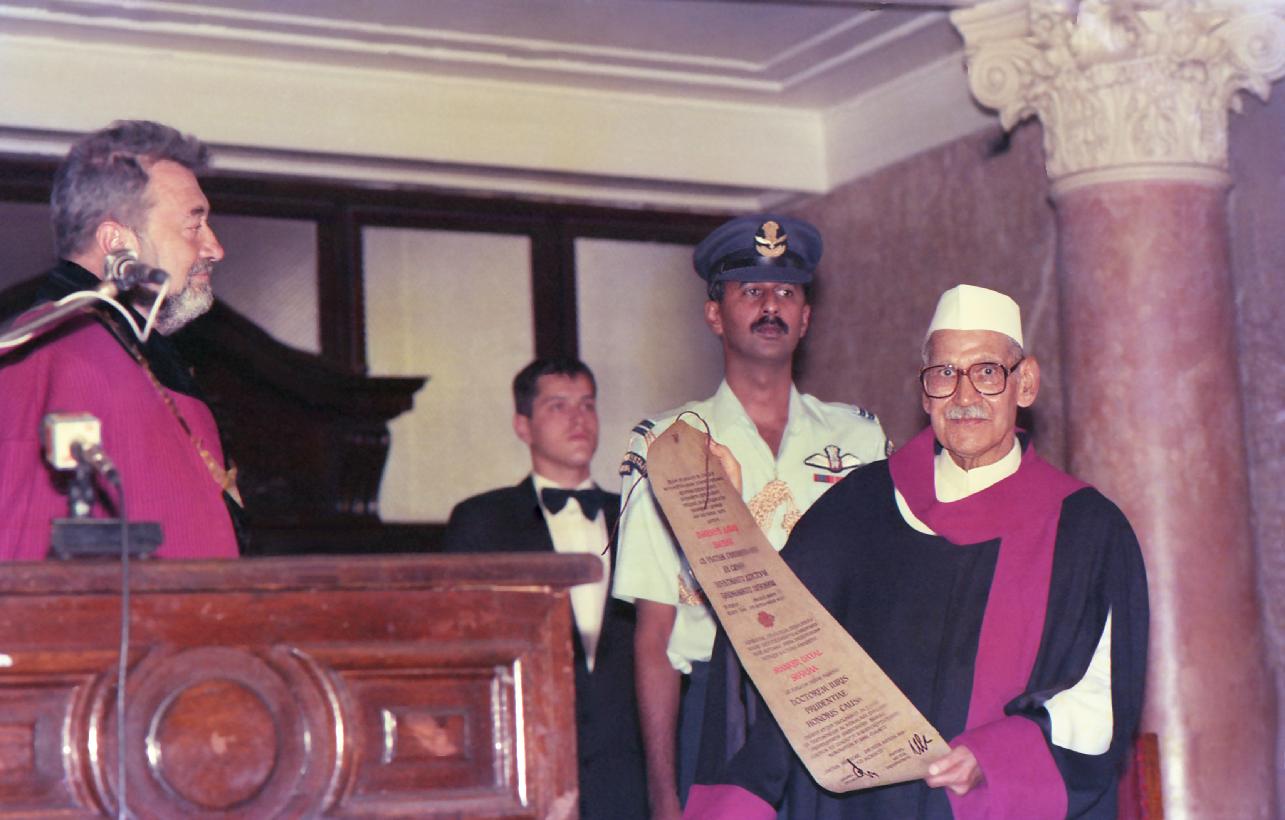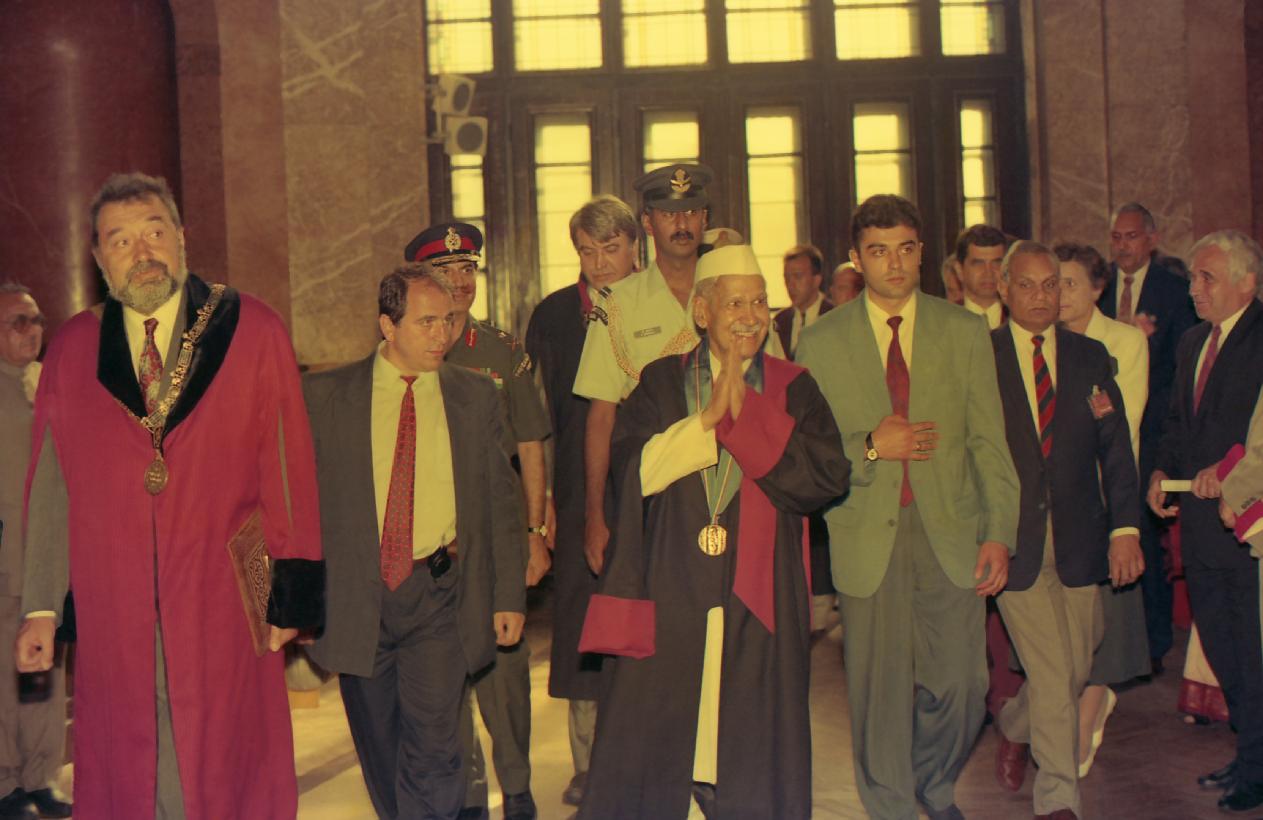 | Caption: | The President of India, Dr. Shankar Dayal Sharma being conferred Doctorate Honoris Causa, at Sofia University, in Bulgaria on May 27, 1994. |