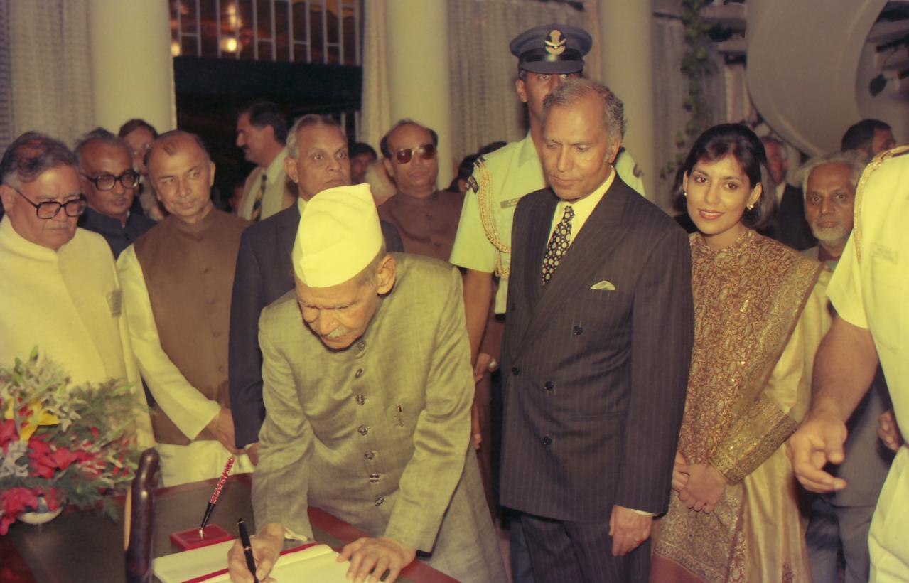 | Caption: | The President of India, Dr. Shankar Dayal Sharma alongwith the President of Bulgaria, Mr. Zhelyu Zhelev, at the Reception hosted by the Ambassador of India, Shri BP Agarwal, at Sofia, in Bulgaria on May 27, 1994. |