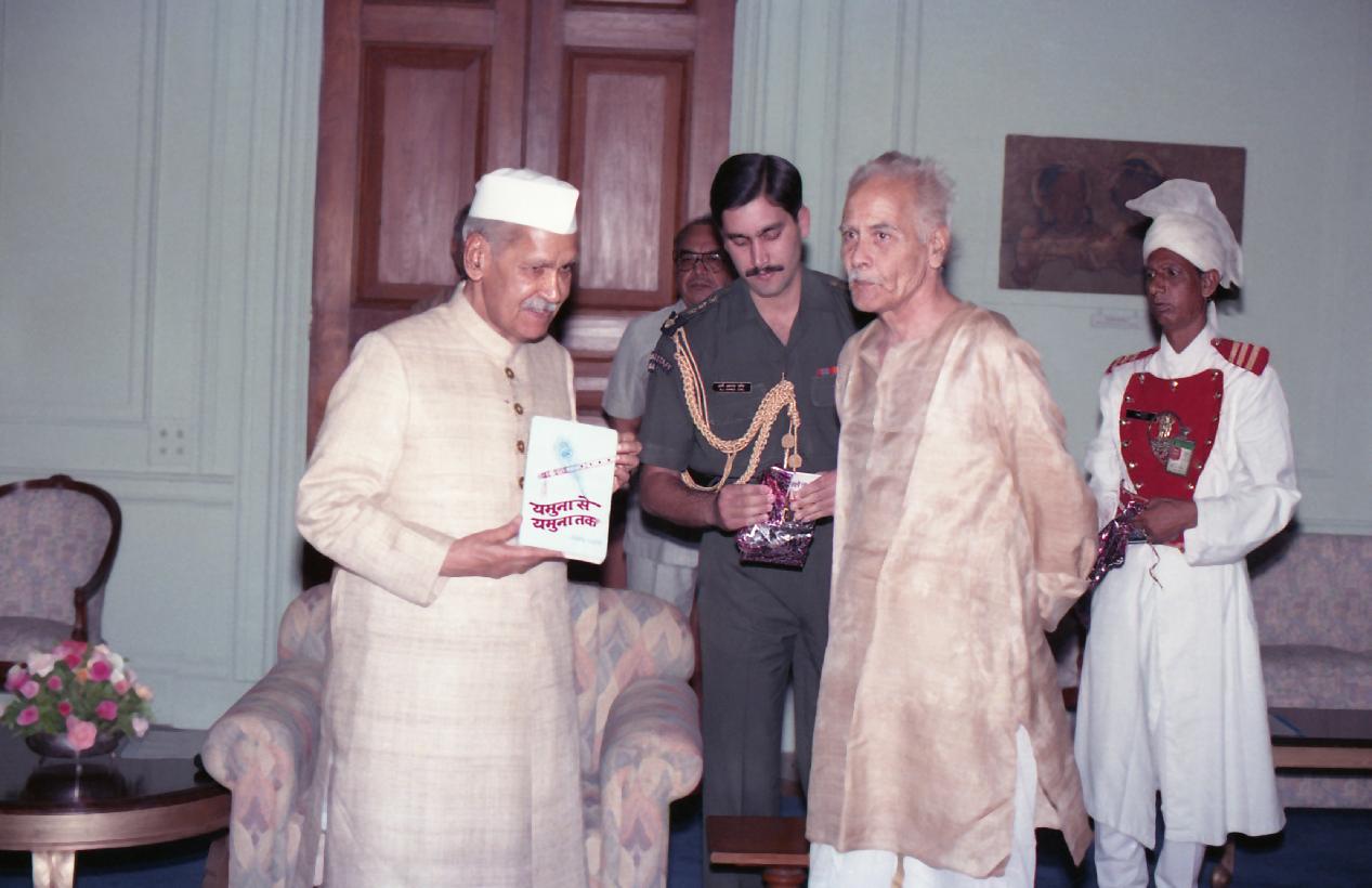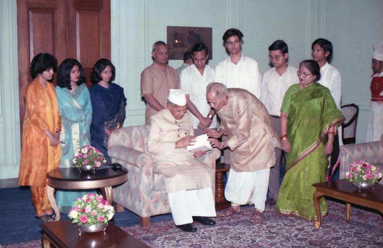 | Caption: | The President of India, Dr. Shankar Dayal Sharma receiving copies of the books "Yamuna Se Yamuna Tak" and "Ye Mohalle Wale" from Shri G.K. Chaturvedi, Director, AIR with others at Rashtrapati Bhavan in New Delhi on May 09, 1994. |