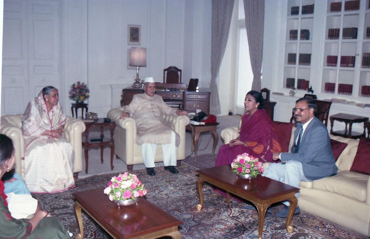 | Caption: | The President of India, Dr. Shankar Dayal Sharma meeting with Smt. Renuka Chowdhary with her family at Rashtrapati Bhavan in New Delhi on May 09, 1994. |