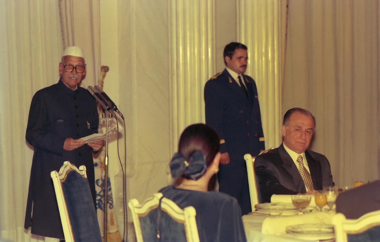 | Caption: | The President of India, Dr. Shankar Dayal Sharma at State Banquet hosted by the President, Romania, Mr. Ion Iliescu, at Bucharest, in Romania on May 30, 1994. |