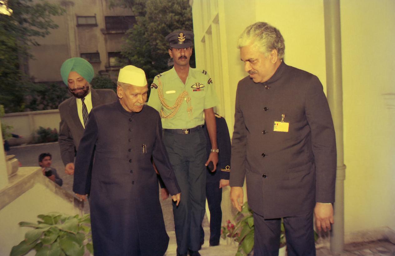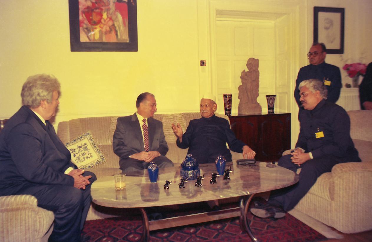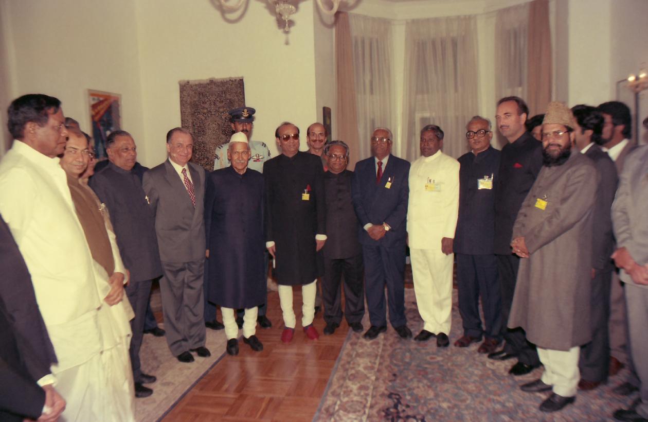 | Caption: | The President of India, Dr. Shankar Dayal Sharma at the Reception hosted by the Indian Ambassador, Shri M.L. Tripathi, at Bucharest, in Romania on May 31, 1994. |