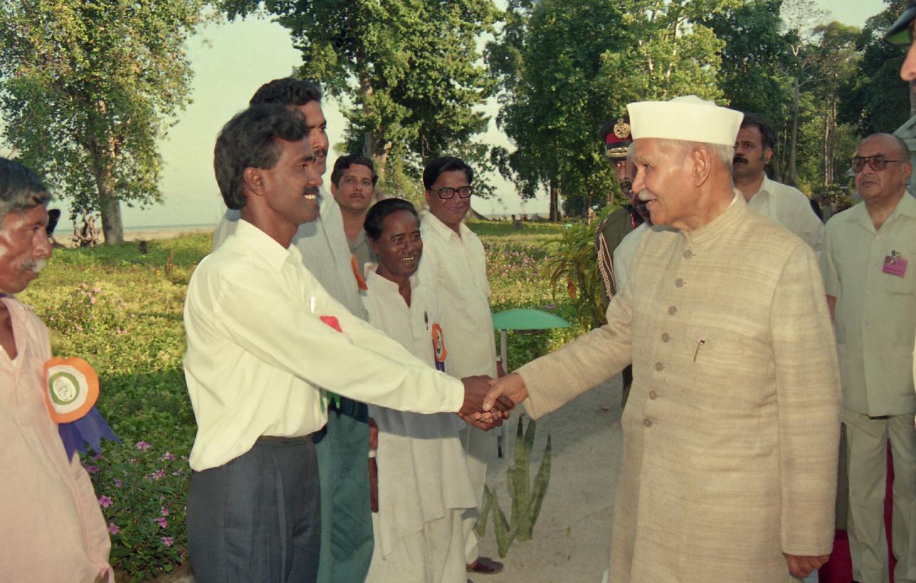 | Caption: | The President of India, Dr. Shankar Dayal Sharma visiting Havelock Island, in Andaman & Nicobar Islands on February 17, 1995. |
