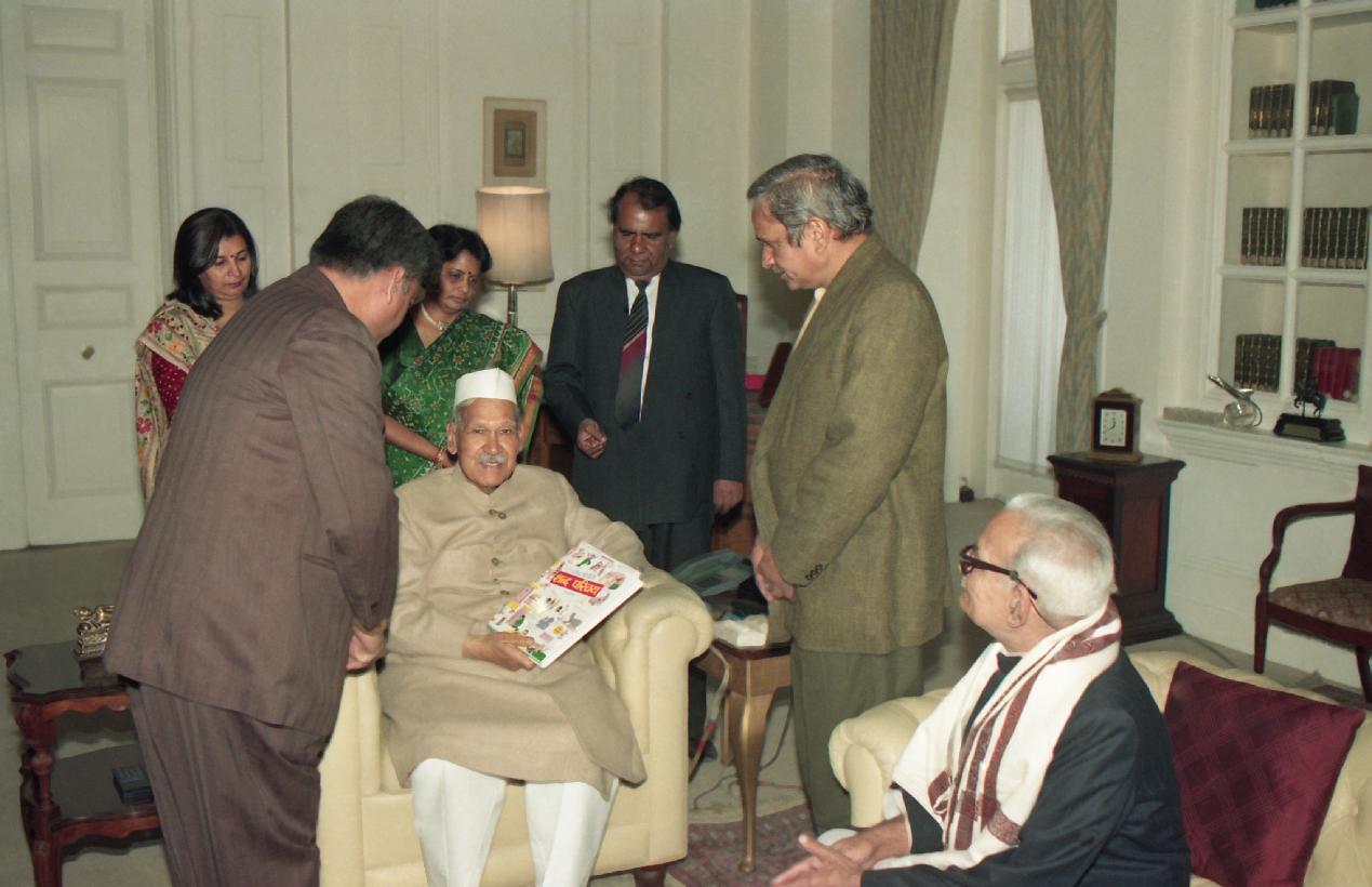| Caption: | The President of India, Dr. Shankar Dayal Sharma receiving a copy of the book "Shabd Parichay" from Shri Gulab Kothari with others at Rashtrapati Bhavan in New Delhi on February 02, 1995. |