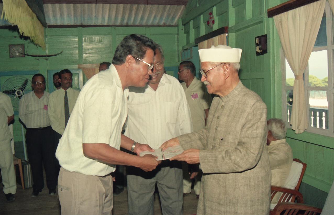 | Caption: | The President of India, Dr. Shankar Dayal Sharma meeting with Tribal Leaders, at Car Nicobar on February 19, 1995. |