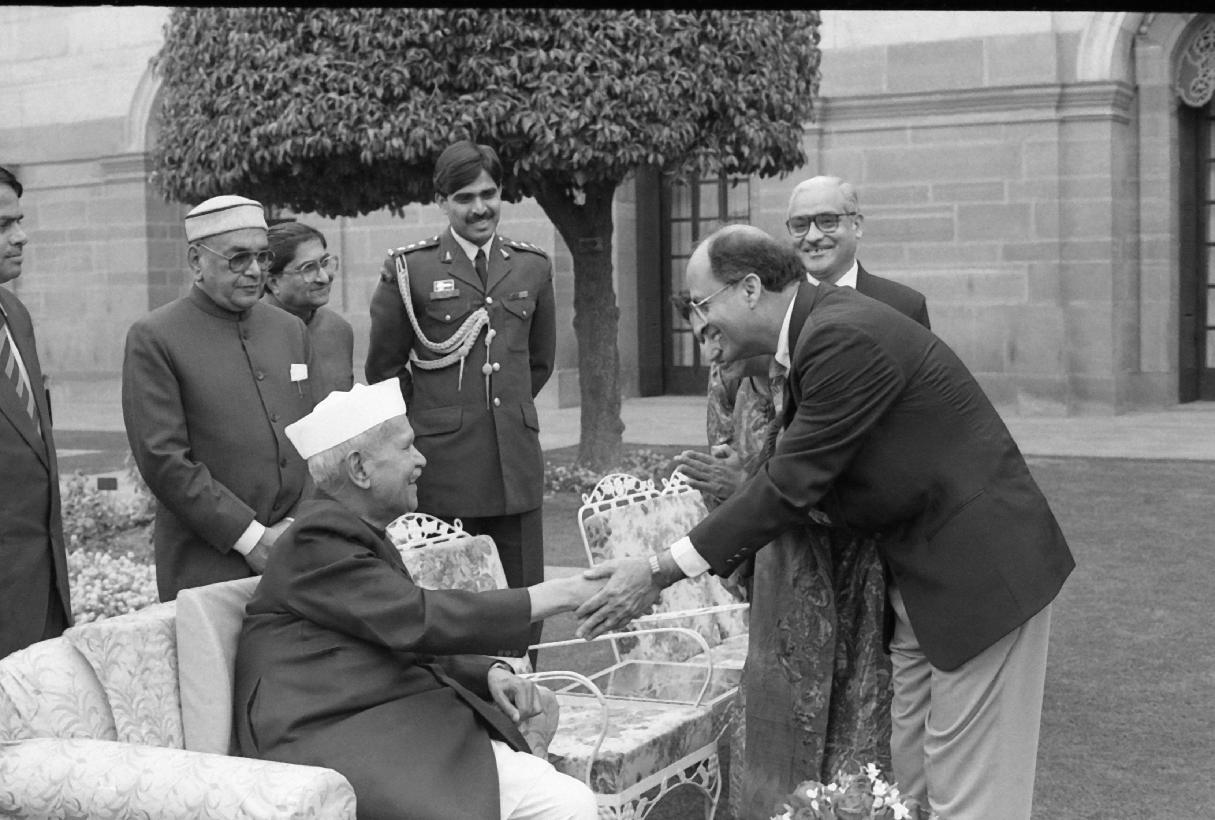 | Caption: | The President of India, Dr. Shankar Dayal Sharma receiving the participants of the world Congress on Prosthodontics at Rashtrapati Bhavan in New Delhi on February 21, 1995. |