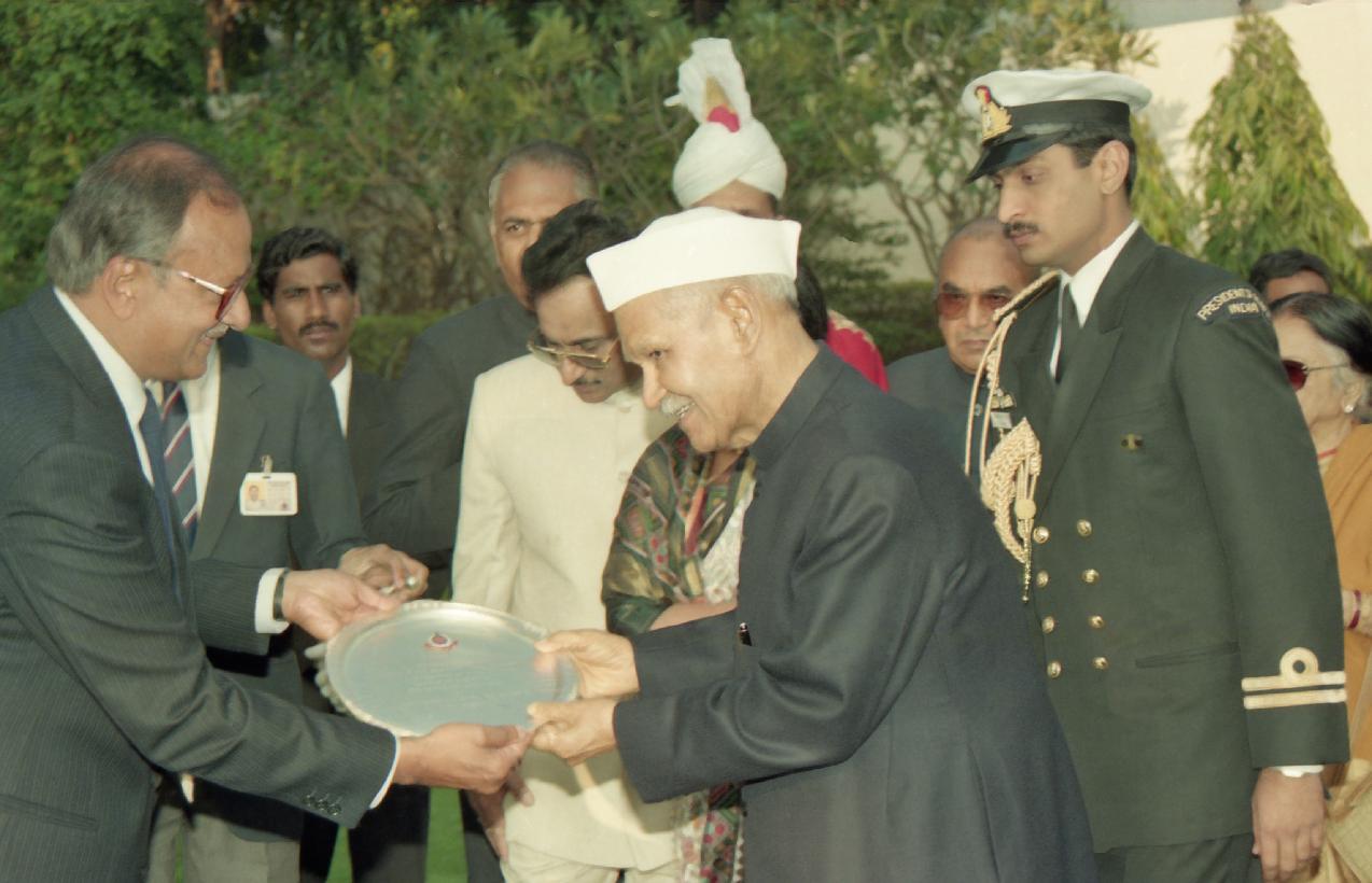 | Caption: | The President of India, Dr. Shankar Dayal Sharma attending 'At Home' at Police House, Akbar Road in New Delhi on February 23, 1995. |