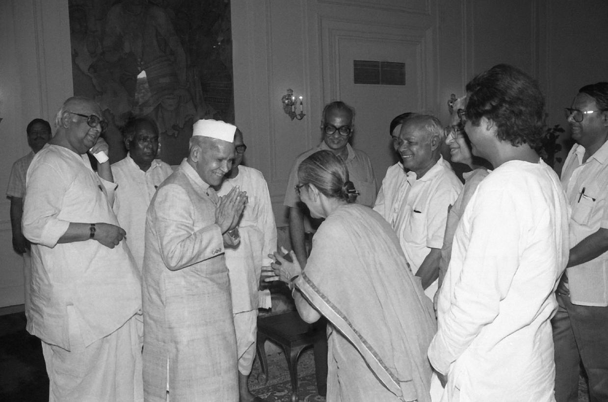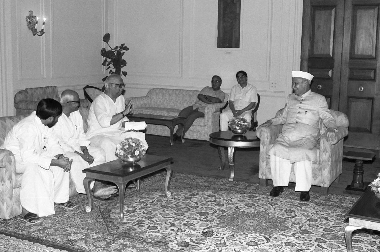 | Caption: | The President of India, Dr. Shankar Dayal Sharma meeting with Shri Somnath Chatterjee with others MPs from Left Parties and Janata Dal at Rashtrapati Bhavan in New Delhi on May 13, 1994. |