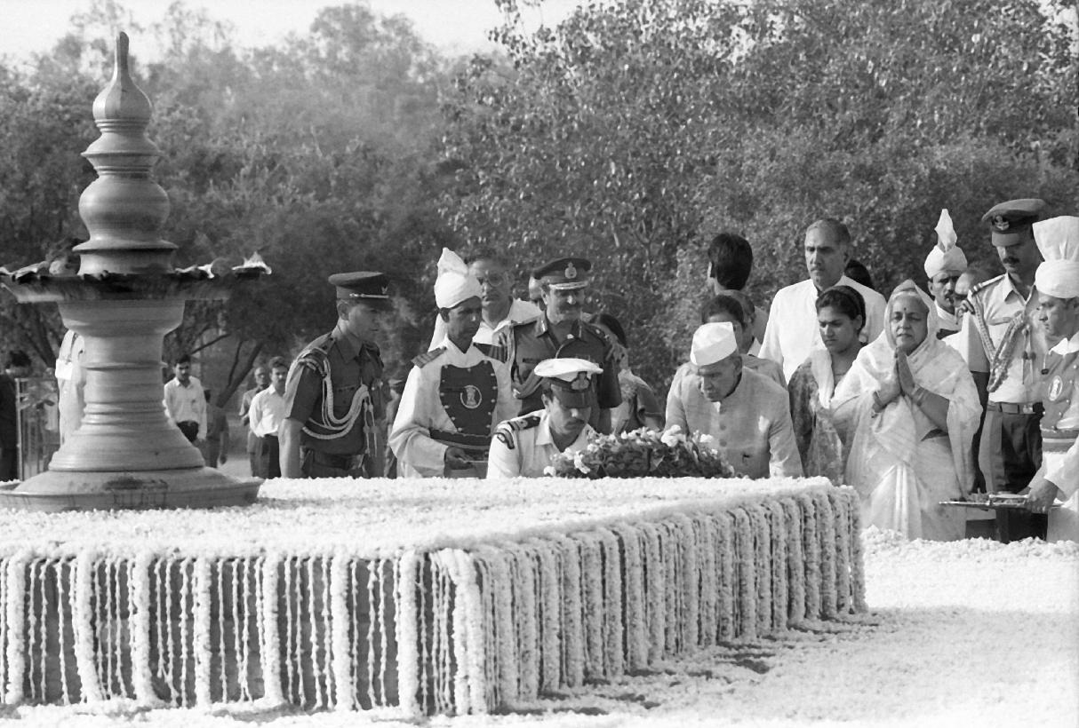 | Caption: | The President of India, Dr. Shankar Dayal Sharma paying floral tributes at the Samadhi of Shri Rajiv Gandhi on his death anniversary, at Vir Bhumi in Delhi on May 21, 1994. |