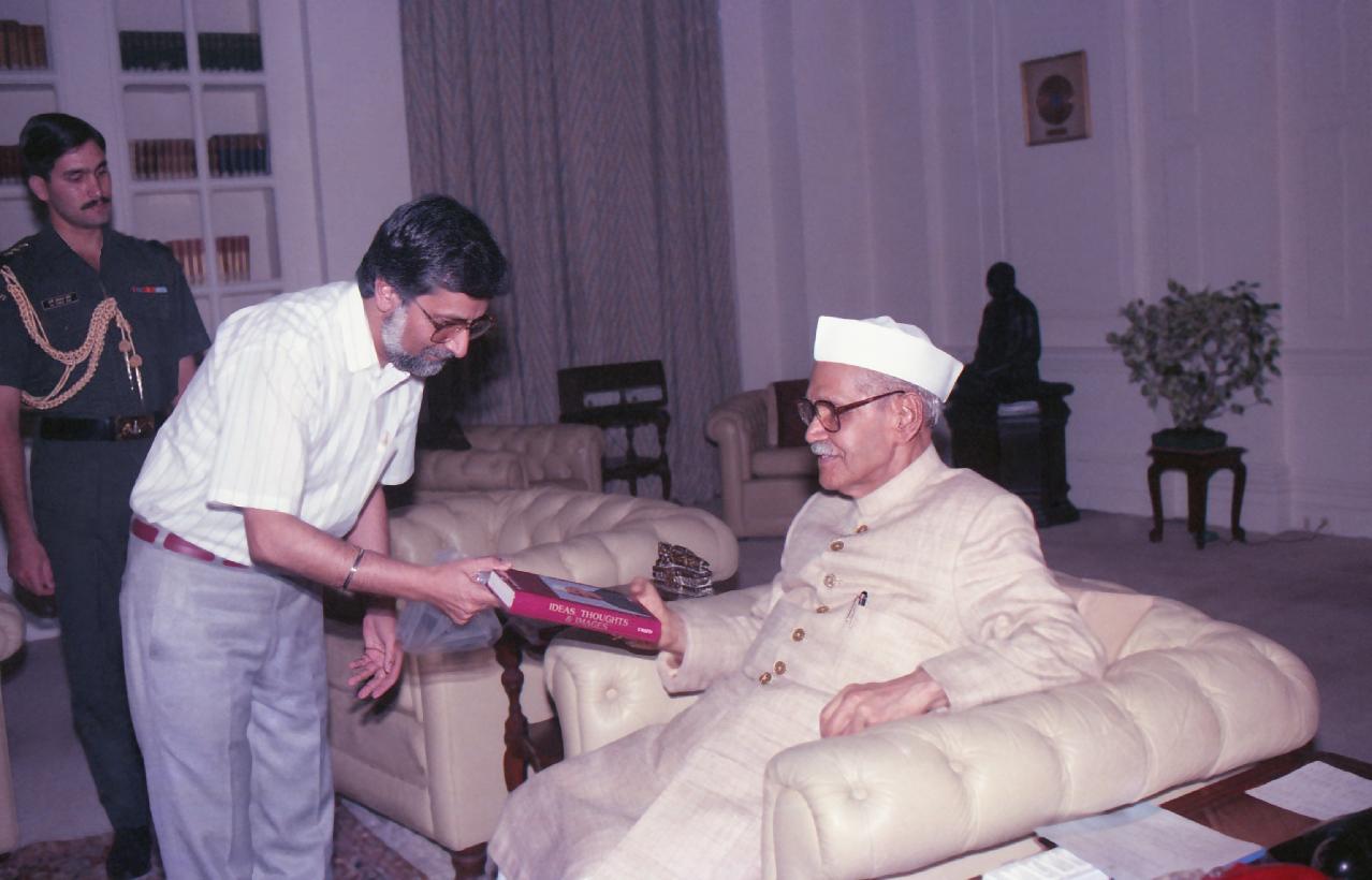 | Caption: | The President of India, Dr. Shankar Dayal Sharma receiving a copy of the book from Mr. Chopra from UBC Publisher at Rashtrapati Bhavan in New Delhi on May 23, 1994. |