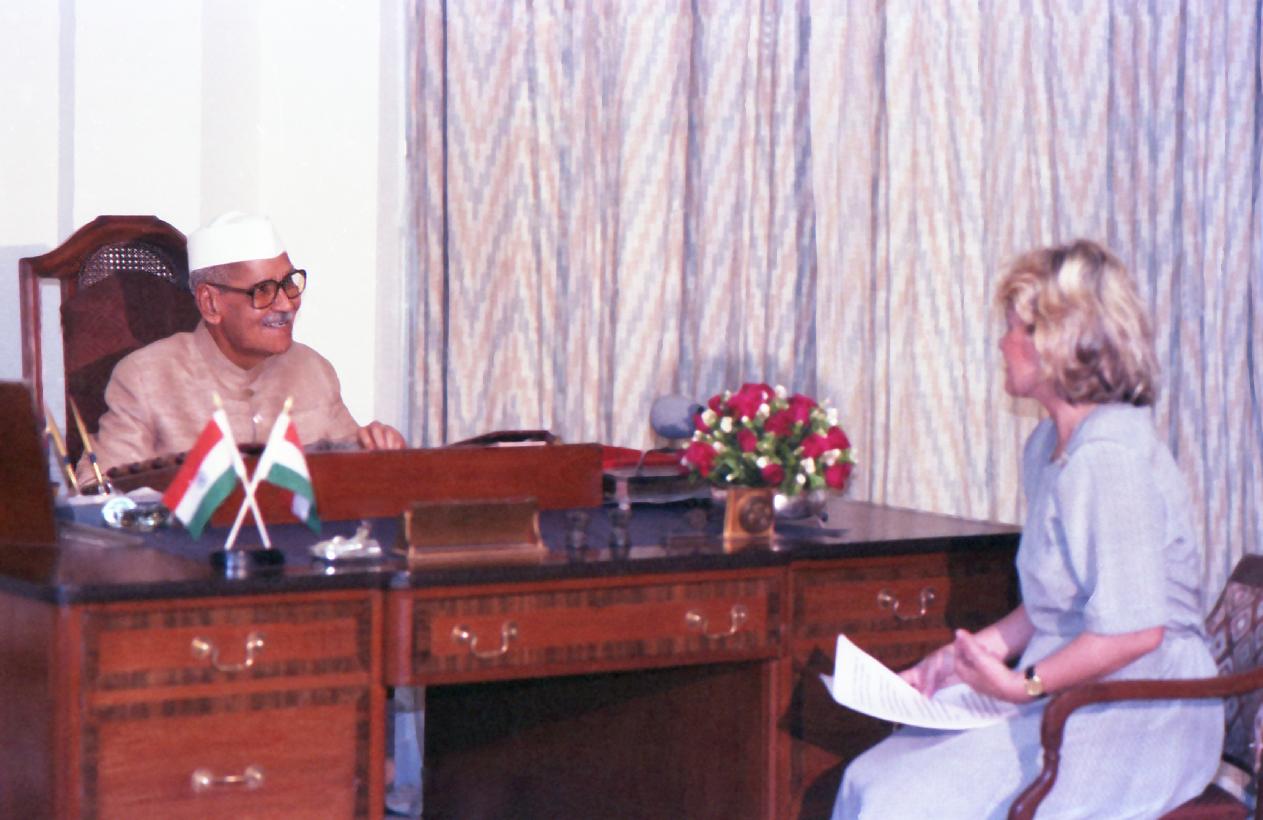 | Caption: | The President of India, Dr. Shankar Dayal Sharma giving an Interview to Romanian TV at Rashtrapati Bhavan in New Delhi on May 24, 1994. |