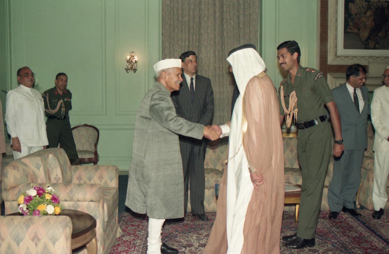 | Caption: | The President of India, Dr. Shankar Dayal Sharma meeting with H.E. Mr. Abdulla Bin Hamad Al Attiyah, Minister of Energy & Industry of Qatar at Rashtrapati Bhavan in New Delhi on March 23, 1995. |