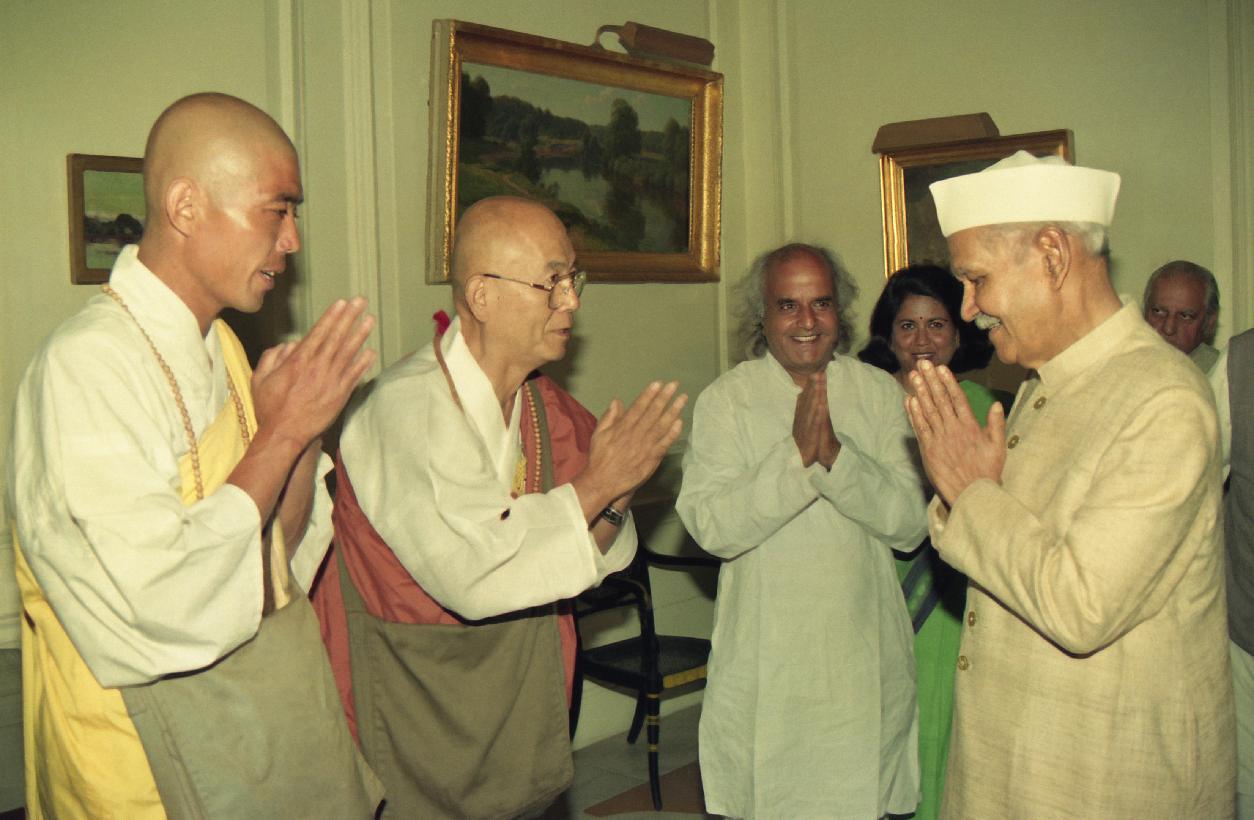 | Caption: | A delegation of the Interfaith Pilgrimage for Peace & Life, 1995 calling on the President of India, Dr. Shankar Dayal Sharma at Rashtrapati Bhavan in New Delhi on March 25, 1995. |