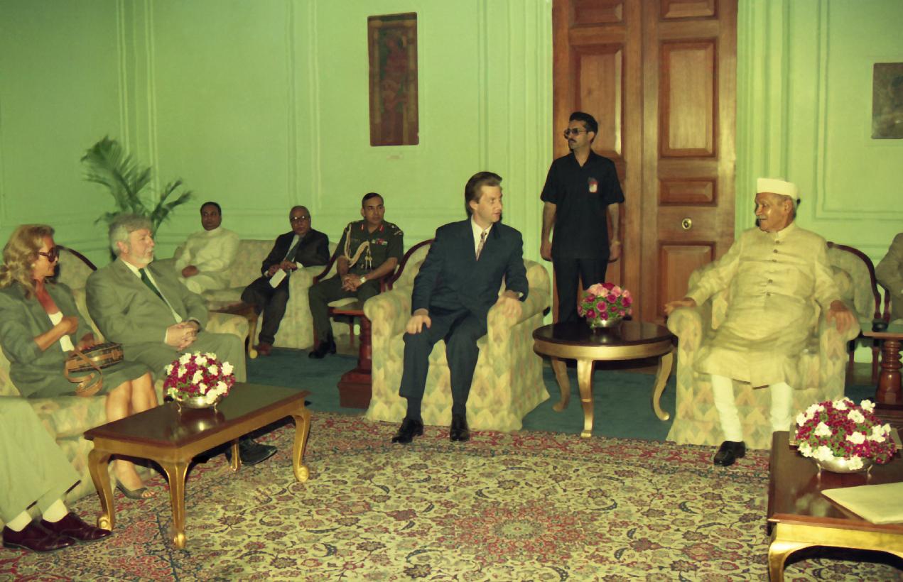 | Caption: | The President of India, Dr. Shankar Dayal Sharma meeting with His Royal Highness Crown Prince Philippe of Belgium at Rashtrapati Bhavan in New Delhi on March 27, 1995. |