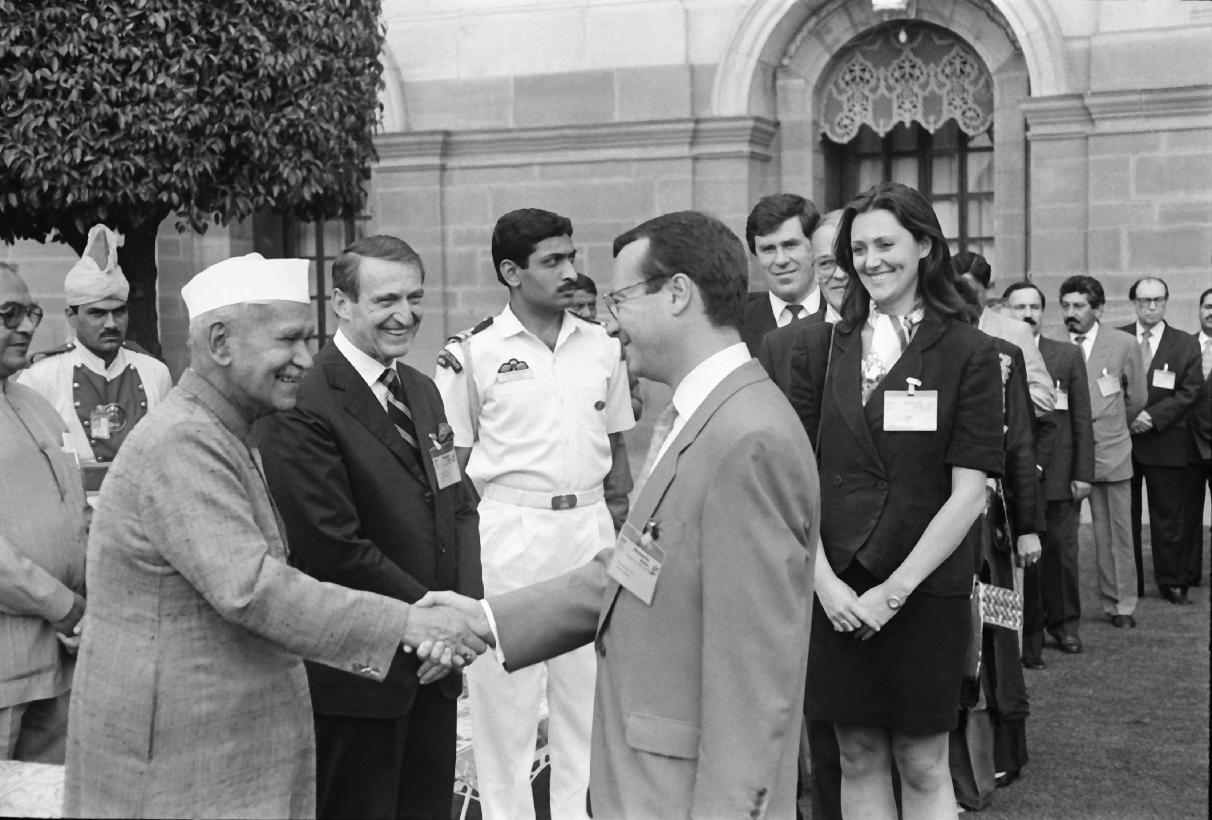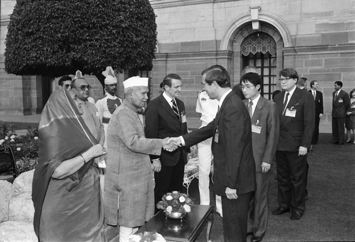 | Caption: | The President of India, Dr. Shankar Dayal Sharma meeting with Delegates of the 10th International ICC Conference at Rashtrapati Bhavan in New Delhi on March 27, 1995. |