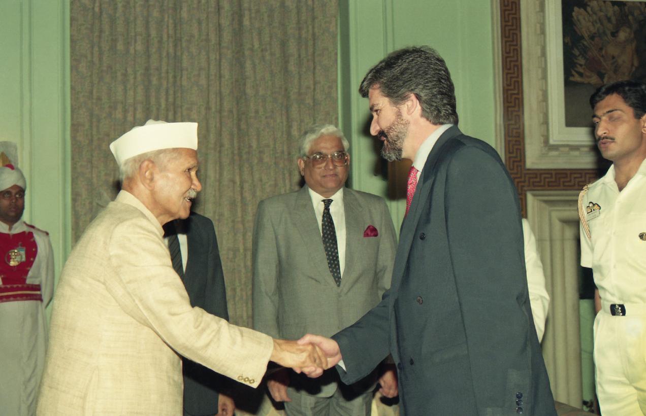 | Caption: | The President of India, Dr. Shankar Dayal Sharma meeting with H.E. Mr. Manuel Marin Gonzalez, Vice-President of the European Commission at Rashtrapati Bhavan in New Delhi on March 27, 1995. |