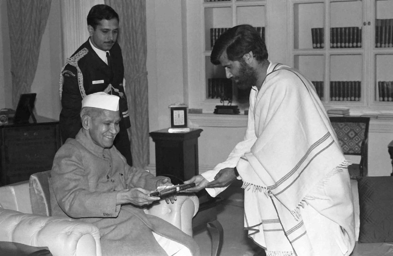 | Caption: | The President of India, Dr. Shankar Dayal Sharma receiving a copy of the book from Shri Surindra Chatima at Rashtrapati Bhavan in New Delhi on January 13, 1994. |