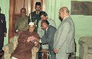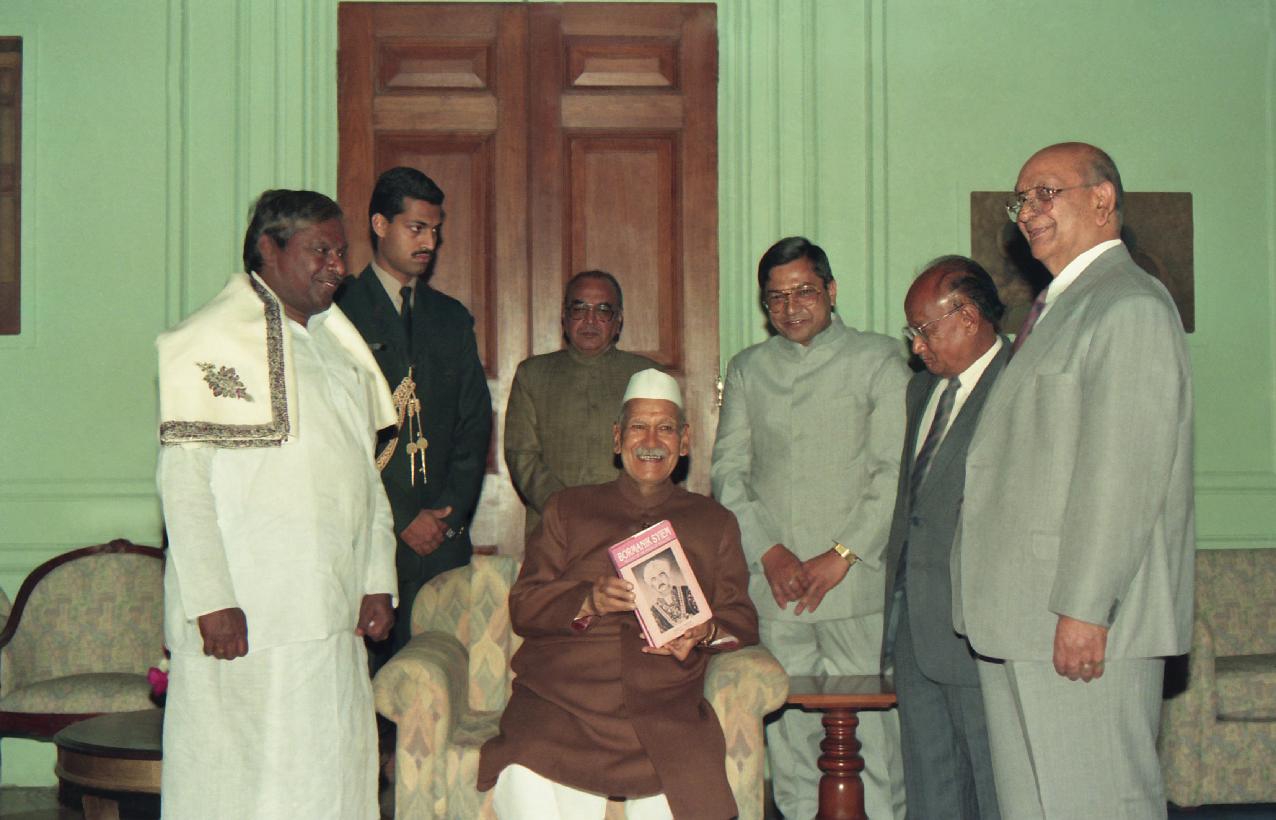 | Caption: | The President of India, Dr. Shankar Dayal Sharma receiving a copy of the book on Barmanik Syiem of Shri J.E. Tariang, Ex-MP at Rashtrapati Bhavan in New Delhi on March 09, 1995. |