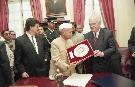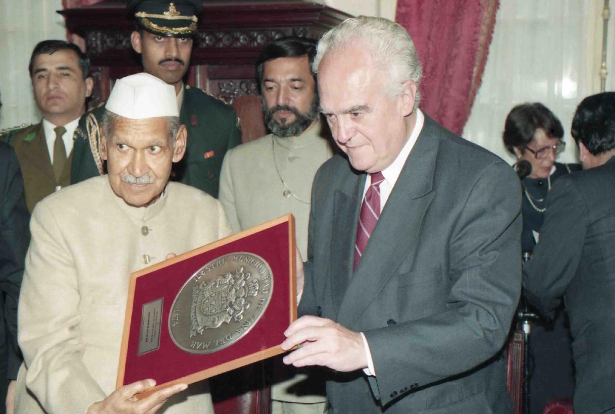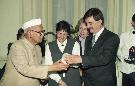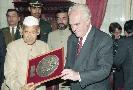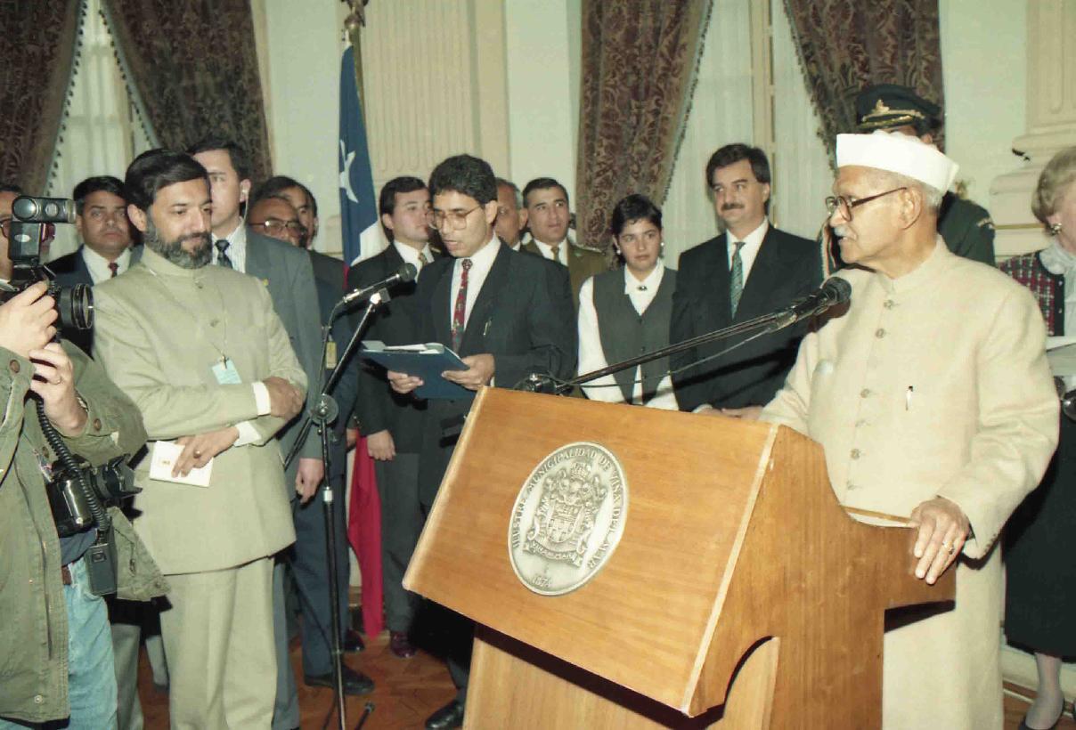 | Caption: | The President of India, Dr. Shankar Dayal Sharma receiving Coat of Arms from the Mayor of Vina Del Mar, in Chile on June 03, 1995. |