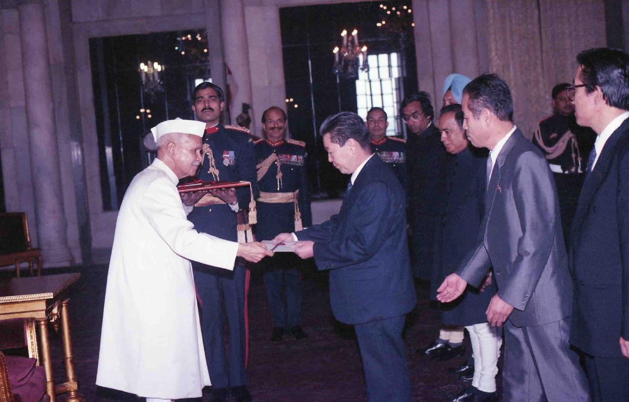 | Caption: | The Ambassador-Designate of DPR Korea to India, H.E. Mr. Cha Bong Ju presenting his credentials to the President of India, Dr. Shankar Dayal Sharma at Rashtrapati Bhavan in New Delhi on January 18, 1994. |