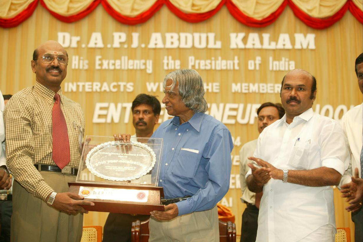 | Caption: | The President of India, Dr A P J Abdul Kalam addressing at the Tamil Nadu Chamber of Commerce & Industry (TNCCI) at Madurai in Tamil Nadu on Aug 27, 2004 |
