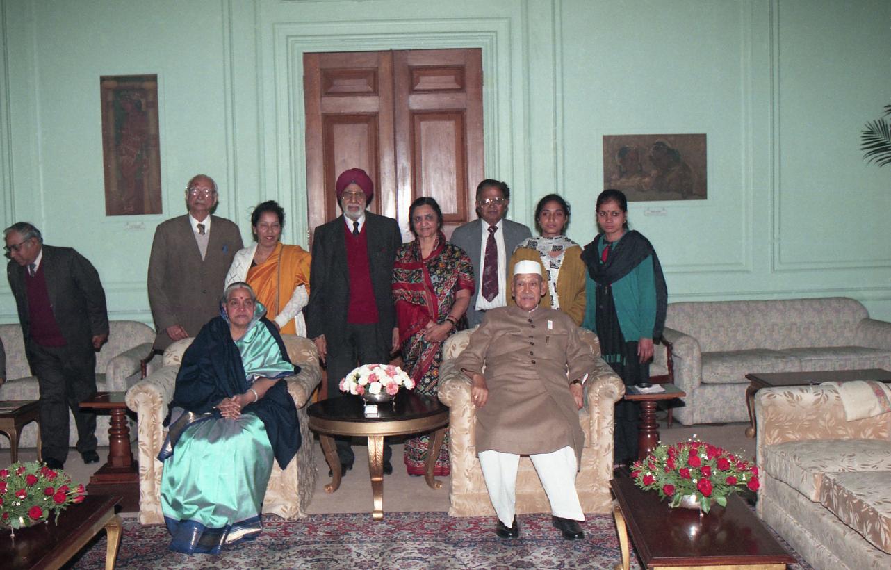 | Caption: | A Delegation from the All India Federation of the Deaf pinned a flag to the President of India, Dr. Shankar Dayal Sharma, on the occasion of their Flag Week, at Rashtrapati Bhavan in New Delhi on February 01, 1997. |