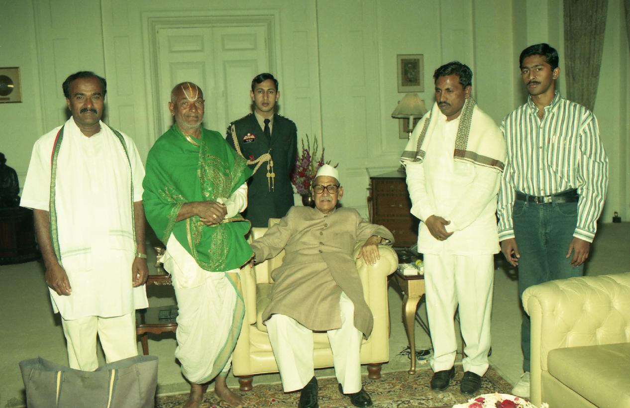 | Caption: | The President of India, Dr. Shankar Dayal Sharma meeting with Shri K.S. Maniappa with others at Rashtrapati Bhavan in New Delhi on February 12, 1997. |