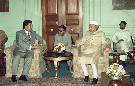 | Caption: | The Deputy Prime Minister and Foreign Minister of Turkmenistan, H.E. Mr. Boris Shikhmuradov calling on the President of India, Dr. Shankar Dayal Sharma, at Rashtrapati Bhavan in New Delhi on April 20, 1995. |