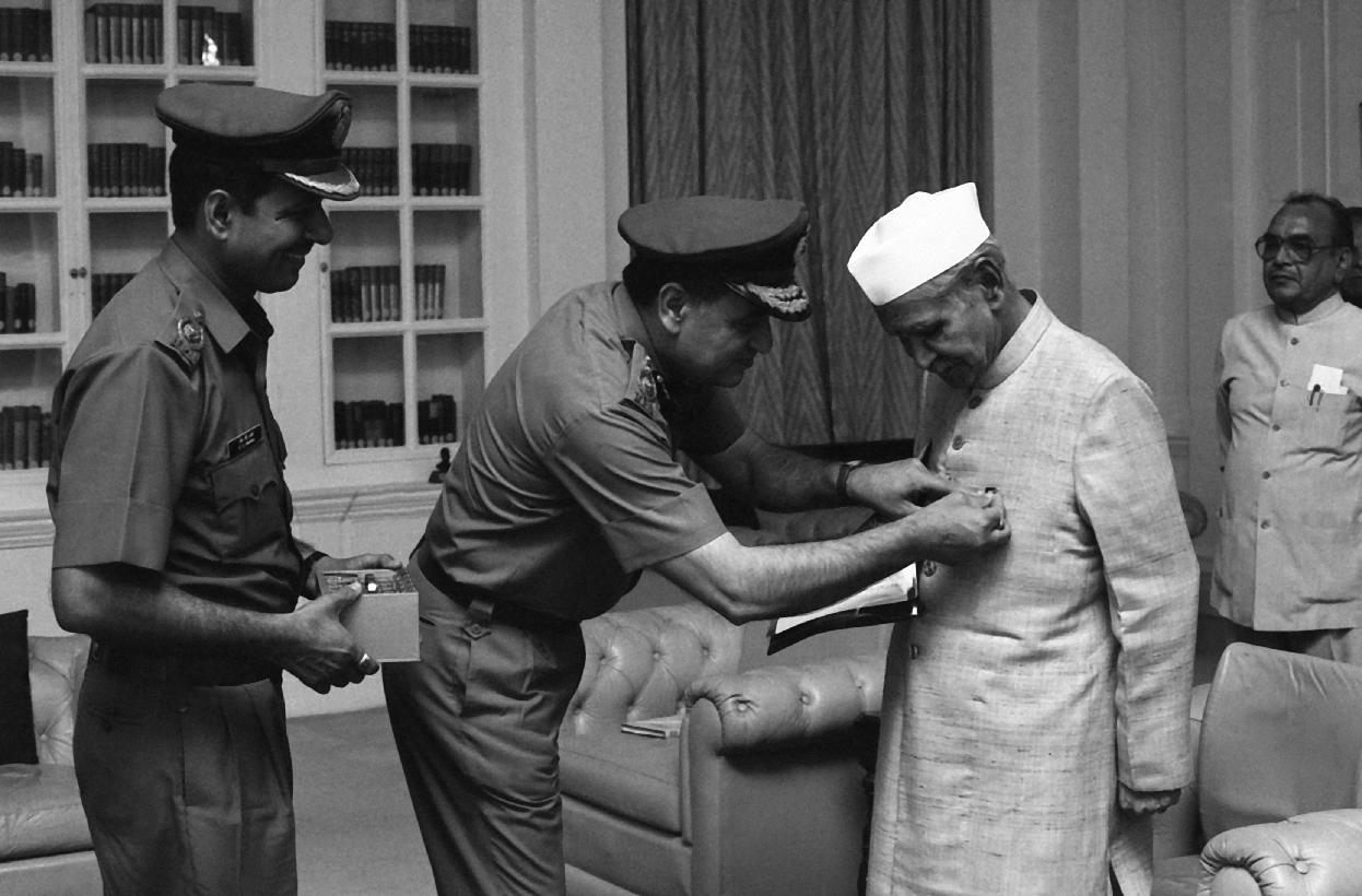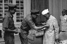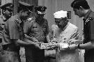 | Caption: | The President of India, Dr. Shankar Dayal Sharma being pinned a flag by the Fire Officers on the occasion of Fire Service Week, at Rashtrapati Bhavan in New Delhi on April 20, 1995. |