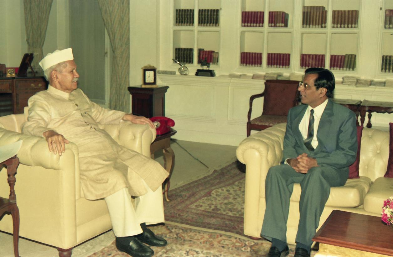 | Caption: | The President of India, Dr. Shankar Dayal Sharma meeting with Shri G.P. Isser, Ambassador to Sudan at Rashtrapati Bhavan in New Delhi on April 20, 1995. |