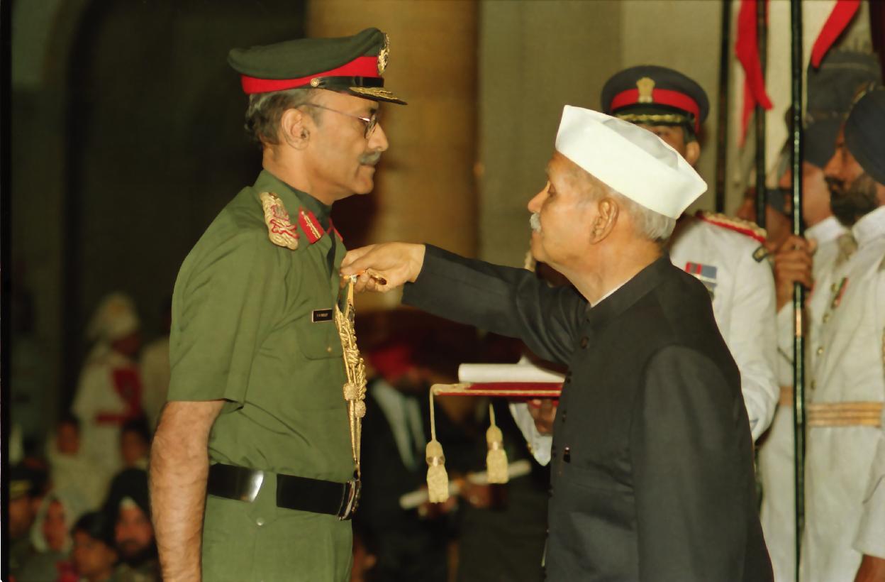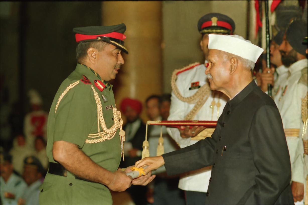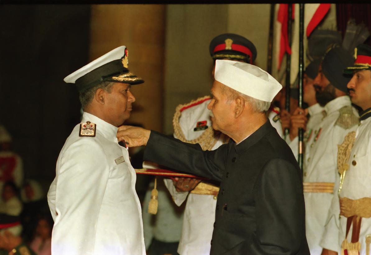 | Caption: | The President of India, Dr. Shankar Dayal Sharma presenting Gallantry Awards and Distinguished Service Decorations, at Defence Investiture Ceremony-I at Rashtrapati Bhavan in New Delhi on March 13, 1995. |