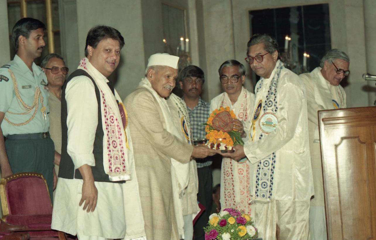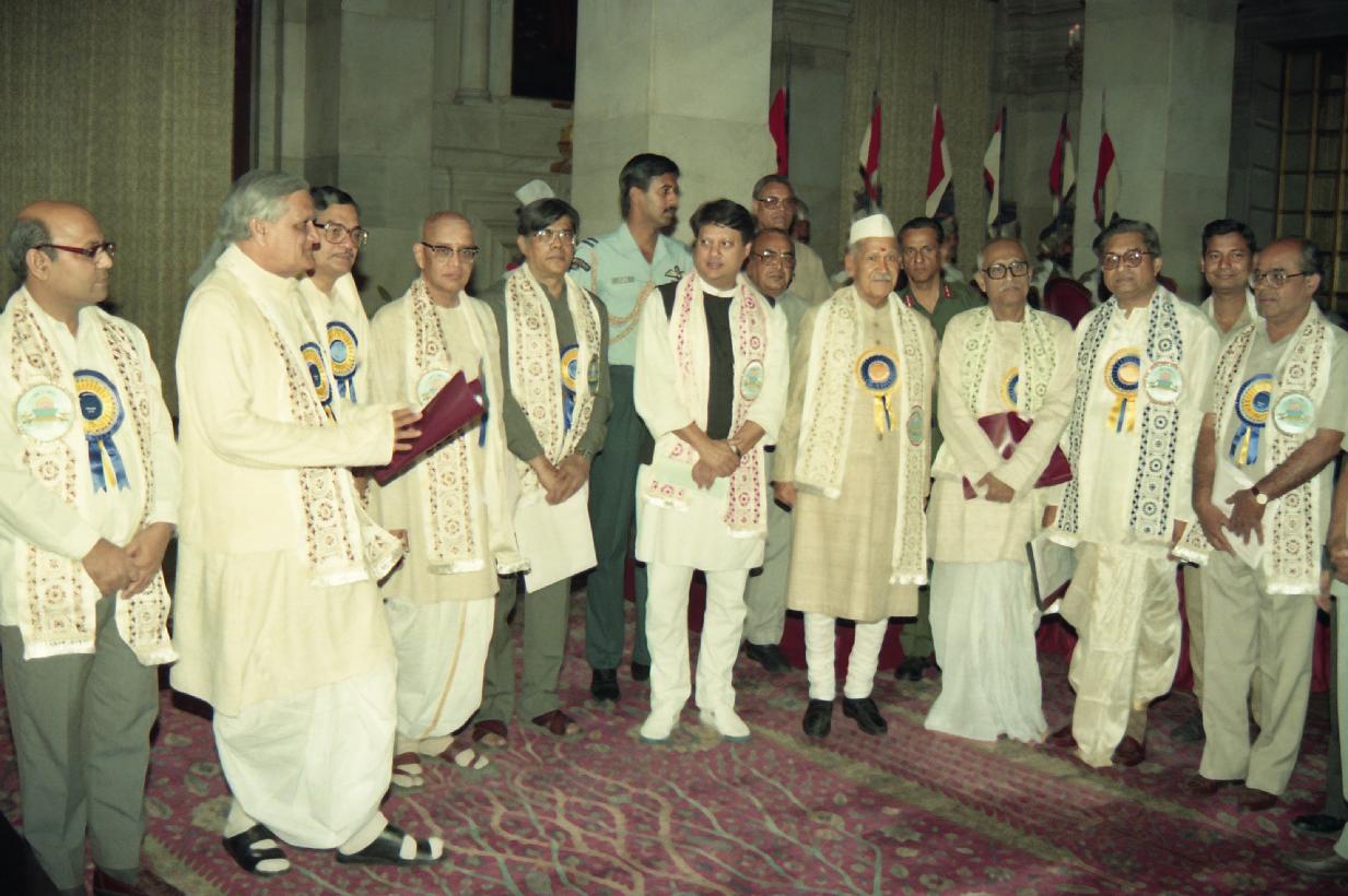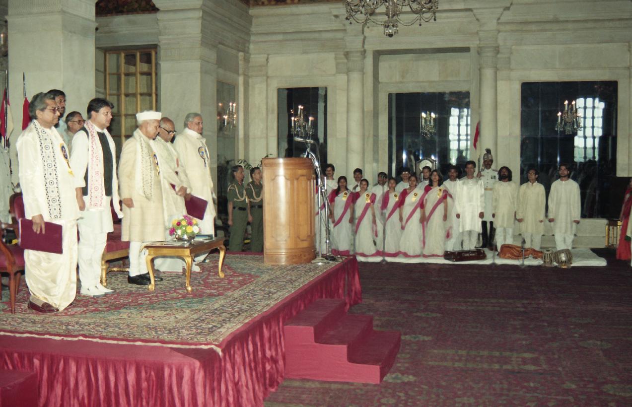 | Caption: | The President of India, Dr. Shankar Dayal Sharma attending the Special convocation of the Tirupati Rashtriya Sanskrit Vidyapeeth (Deemed University) at Rashtrapati Bhavan in New Delhi on March 20, 1995. |