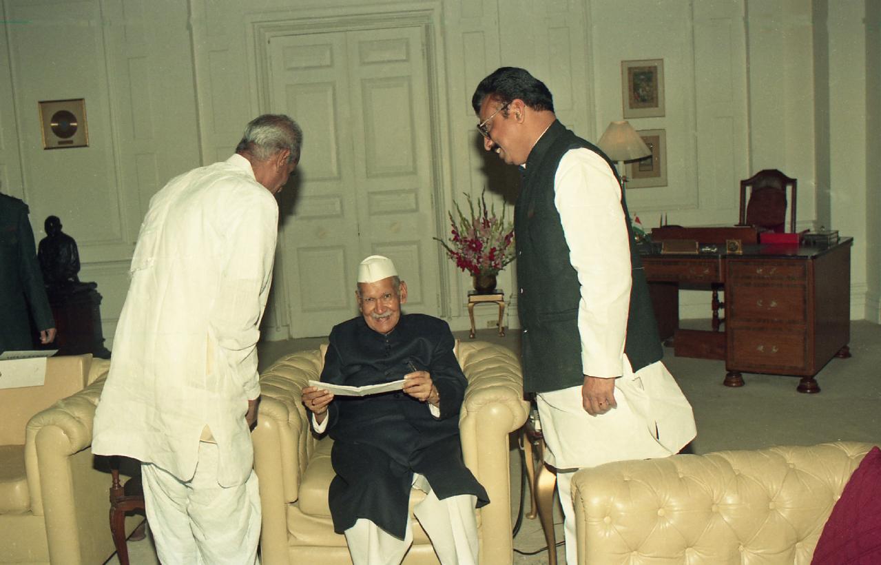 | Caption: | The President of India, Dr. Shankar Dayal Sharma meeting with Shri Sai Pratap, MP, at Rashtrapati Bhavan in New Delhi on February 26, 1997. |