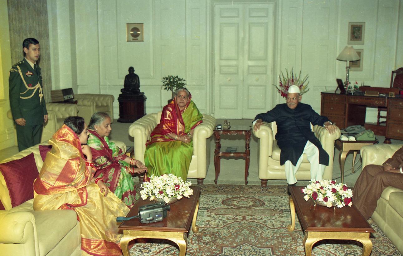 | Caption: | The President of India, Dr. Shankar Dayal Sharma meeting with Mrs. Nirmala Chaturvedi with others at Rashtrapati Bhavan in New Delhi on February 26, 1997. |