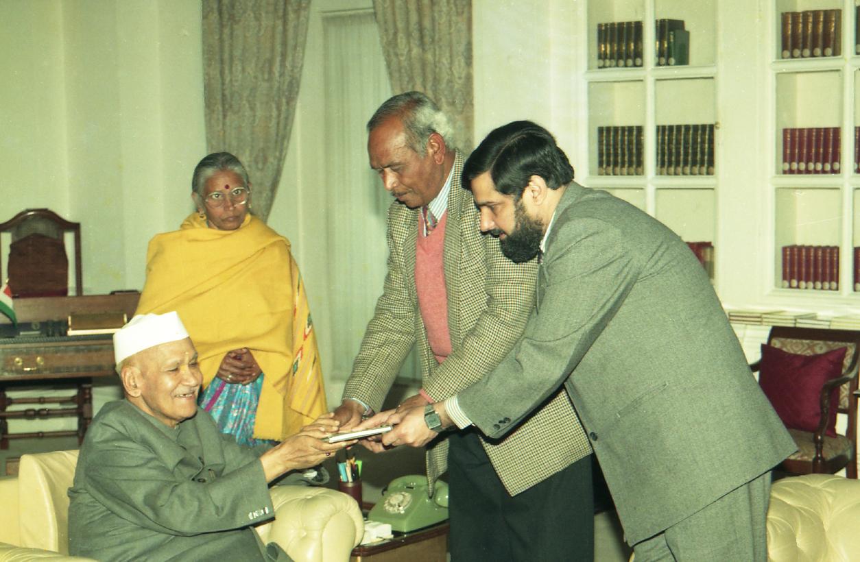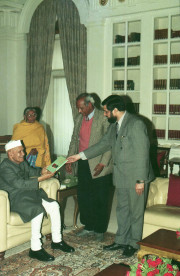 | Caption: | The President of India, Dr. Shankar Dayal Sharma meeting with Dr. Gyanendra Pandey with others, at Rashtrapati Bhavan in New Delhi on February 05, 1997. |