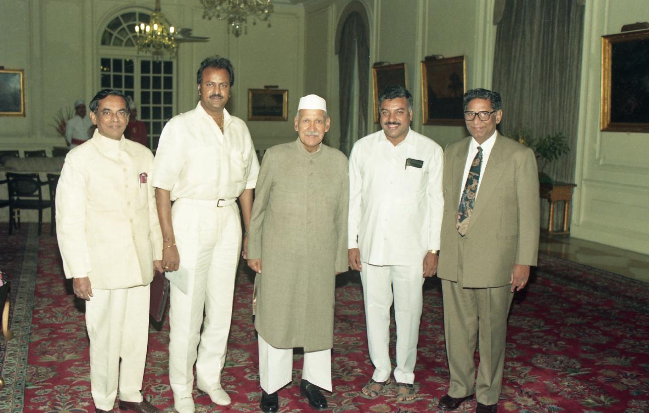 | Caption: | The President of India, Dr. Shankar Dayal Sharma with TDP(CN) and TDP(NTR) MPs (Lok Sabha & Rajya Sabha) from Andhra Pradesh during Breakfast meeting, at Rashtrapati Bhavan in New Delhi on March 10, 1997. |