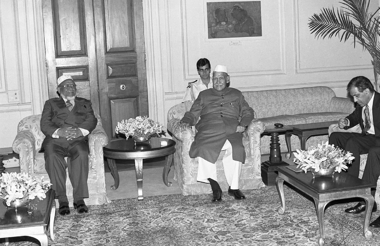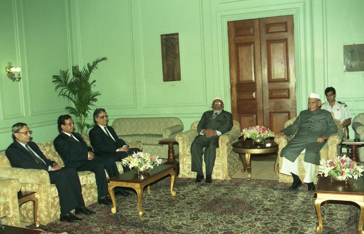 | Caption: | The President of India, Dr. Shankar Dayal Sharma meeting with the Foreign Minister of Bangladesh, Mr. Abdus Samad Azad at Rashtrapati Bhavan in New Delhi on March 12, 1997. |