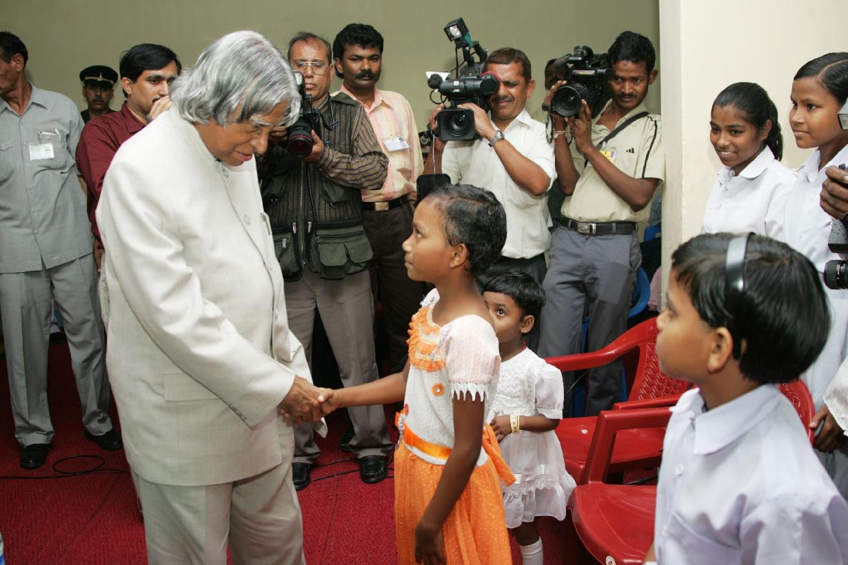 | Caption: | The President of India, Dr A P J Abdul Kalam interacting with the Children of Orphanage at Port Blair in Andaman & Nicobar on May 05, 2005 |