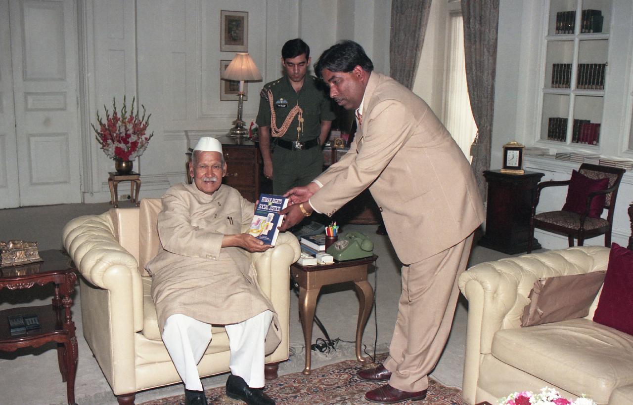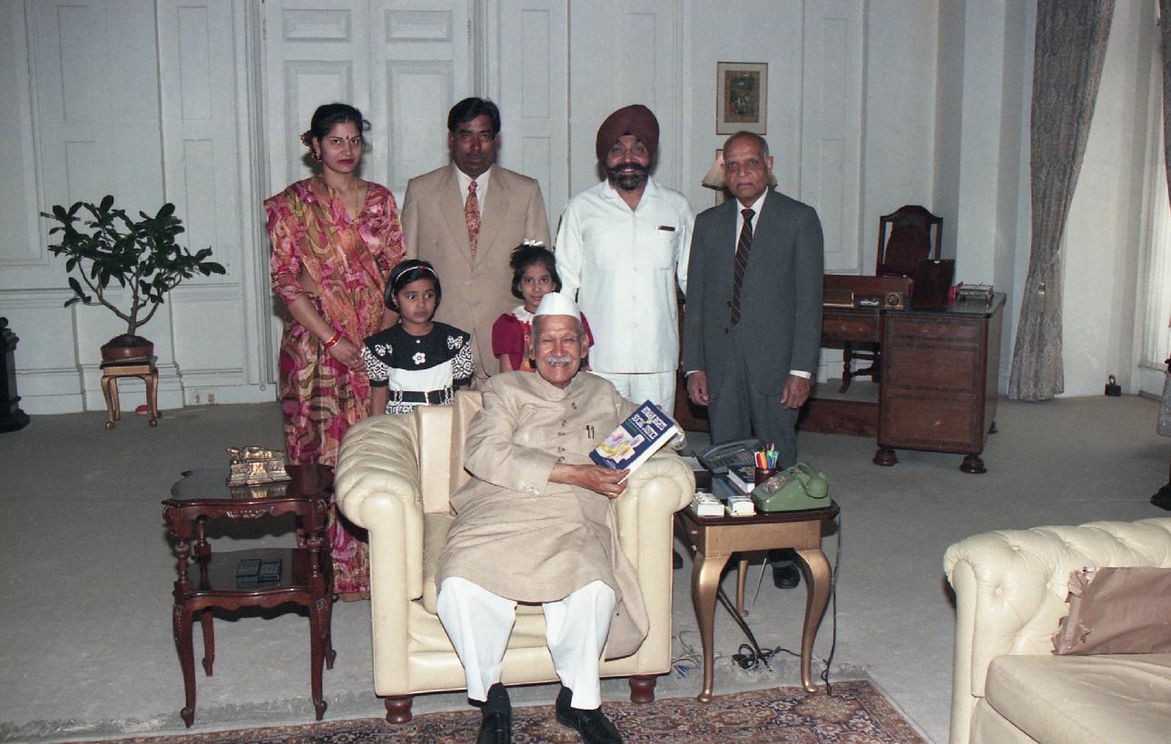 | Caption: | The President of India, Dr. Shankar Dayal Sharma meeting with Dr. Gokulesh Sharma with others at Rashtrapati Bhavan in New Delhi on March 14, 1997. |