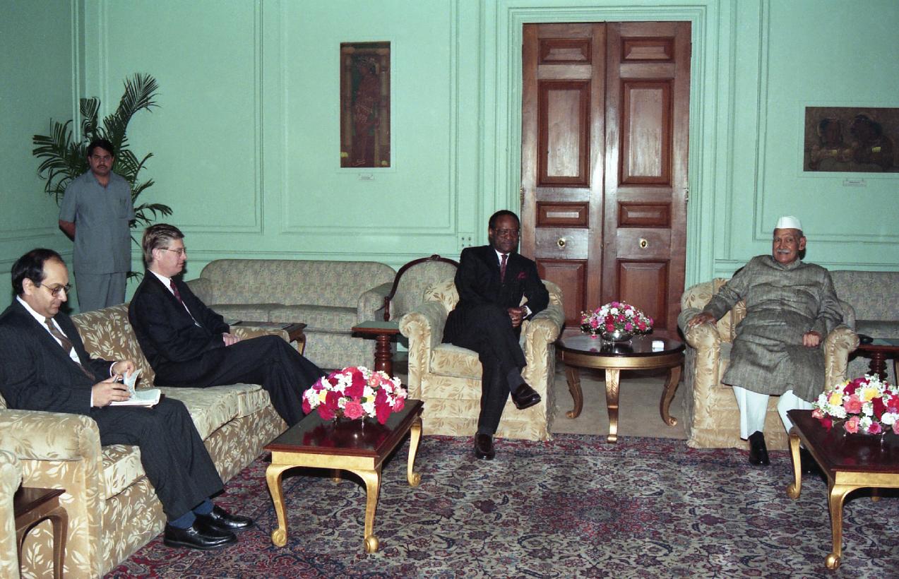 | Caption: | The Secretary General of the Commonweath, HE Chief Emeka Anyaoku calling on the President of India, Dr. Shankar Dayal Sharma, at Rashtrapati Bhavan in New Delhi on March 18, 1997. |