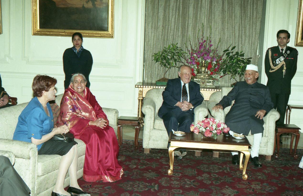 | Caption: | The President of India, Dr. Shankar Dayal Sharma with the President of the Republic of Cyprus, HE Mr. Glafcos Clerides and Mrs. Lilla-Irene Clerides during a farewell tete-a-tete at Rashtrapati Bhavan in New Delhi on February 11, 1997. |