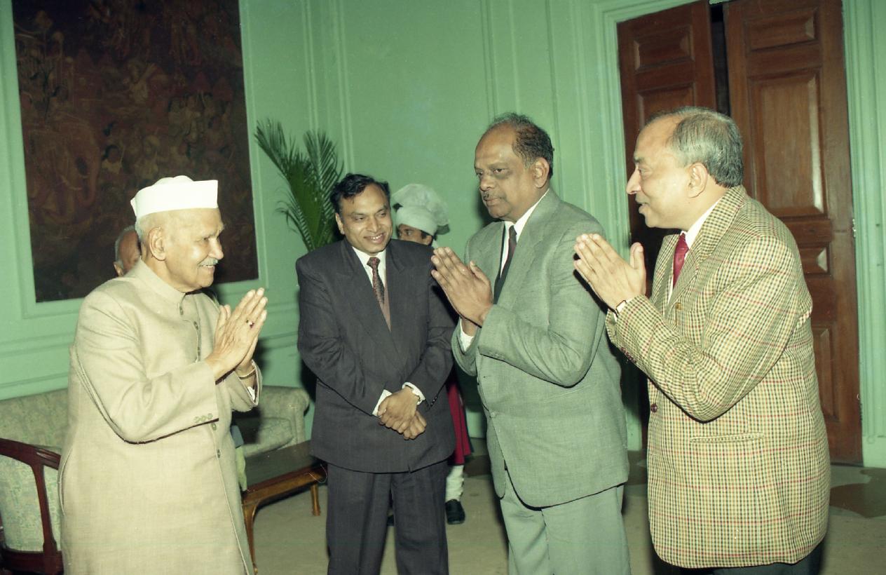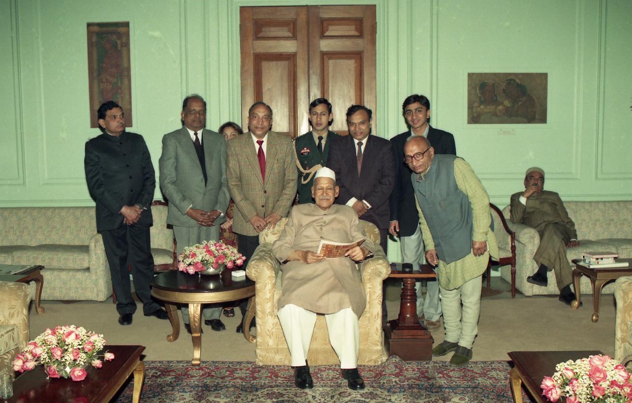 | Caption: | A Shakahar delegation led by Shri Mahabir Prasad Jain calling on the President of India, Dr. Shankar Dayal Sharma at Rashtrapati Bhavan in New Delhi on February 12, 1997. |