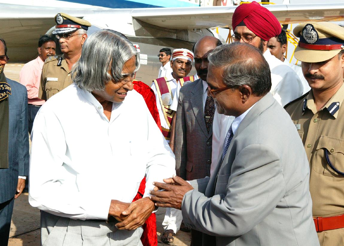 The President of India, Dr A P J Abdul Kalam arriving at Tiruchirappalli in Tamil Nadu on Aug 26, 2004