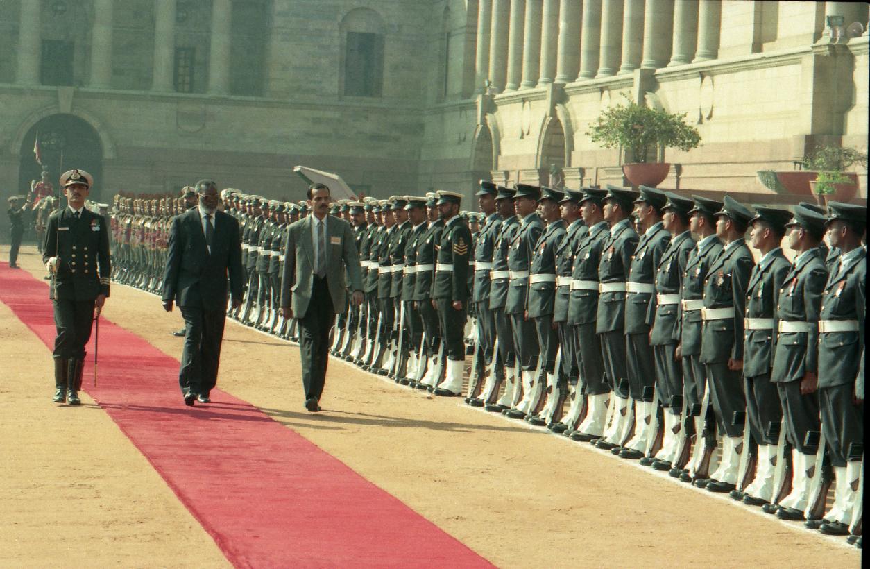 | Caption: | The President of India, Dr. Shankar Dayal Sharma receiving the President of the Republic of Namibia, HE Dr. Sam Nujoma at the Ceremonial Reception, at Rashtrapati Bhavan in New Delhi on February 14, 1997. |