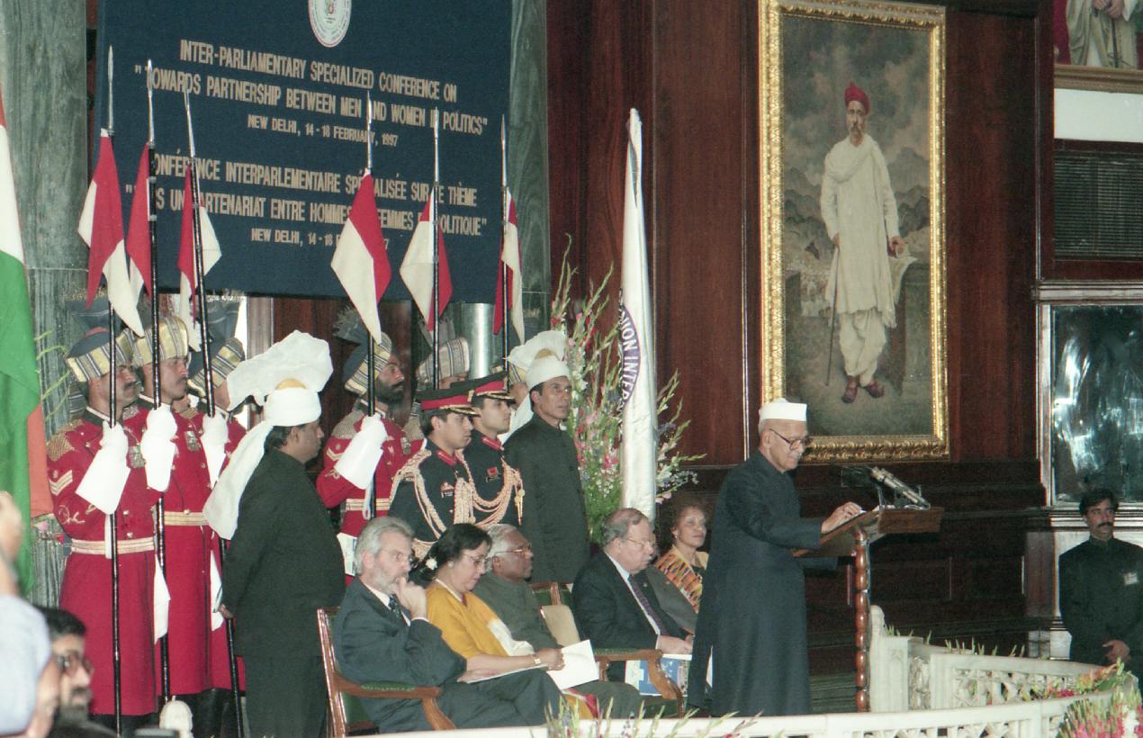 | Caption: | The President of India, Dr. Shankar Dayal Sharma inaugurating the Specialised Inter-Parliamentary Conference on "Towards partnership betwenn men & women in politics" at Parliament House in New Delhi on February 14, 1997. |