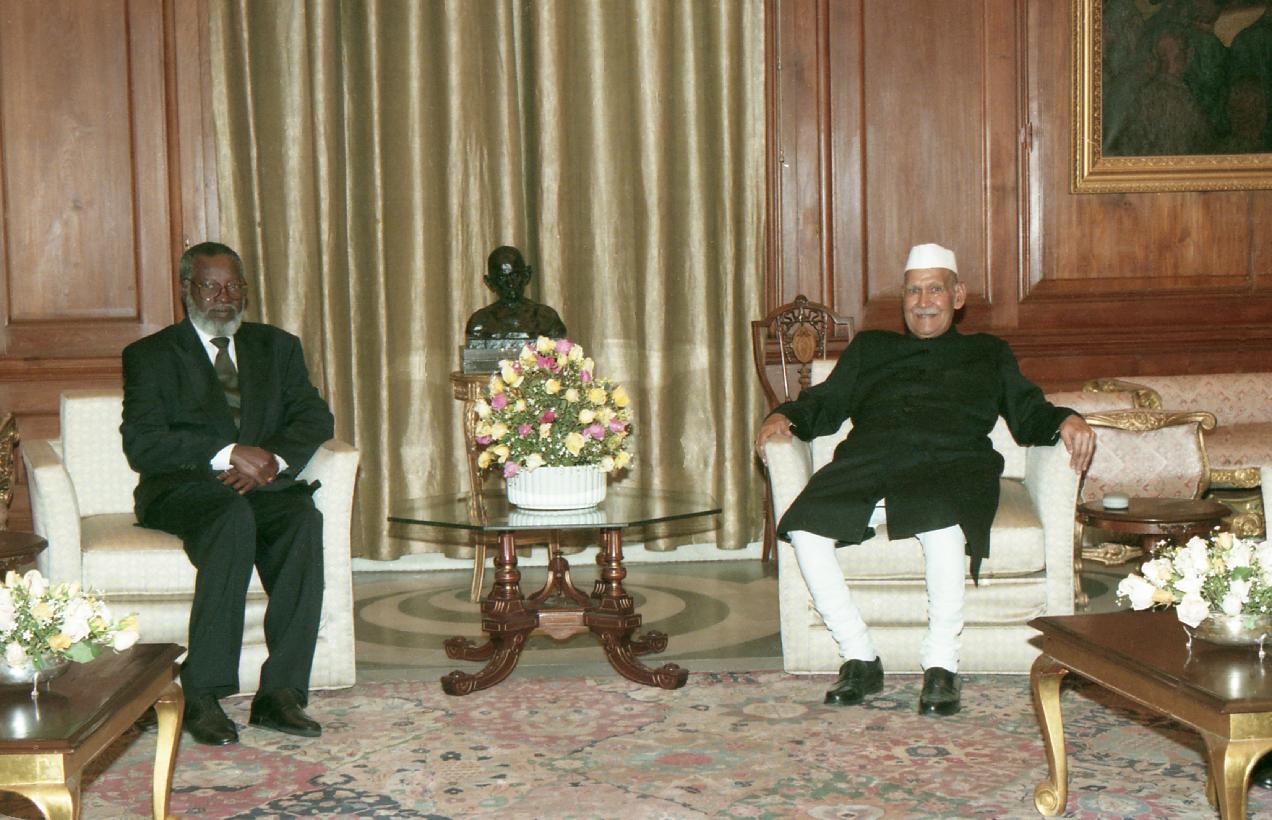 | Caption: | The President of the Republic of Namibia, HE Dr. Sam Nujoma calling on the President of India, Dr. Shankar Dayal Sharma, at Rashtrapati Bhavan in New Delhi on February 14, 1997. |