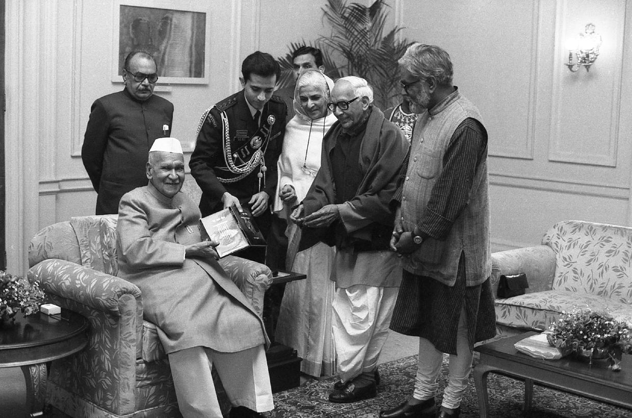 | Caption: | The President of India, Dr. Shankar Dayal Sharma receiving a copy of the book "Yatra" from Dr. Raj Kumar at Rashtrapati Bhavan in New Delhi on February 18, 1997. |
