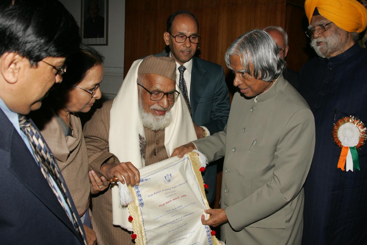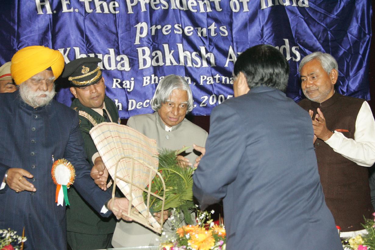 | Caption: | The President of India, Dr A P J Abdul Kalam presenting the Khuda Bakhsh Award at Patna in Bihar on Dec 30, 2005 |