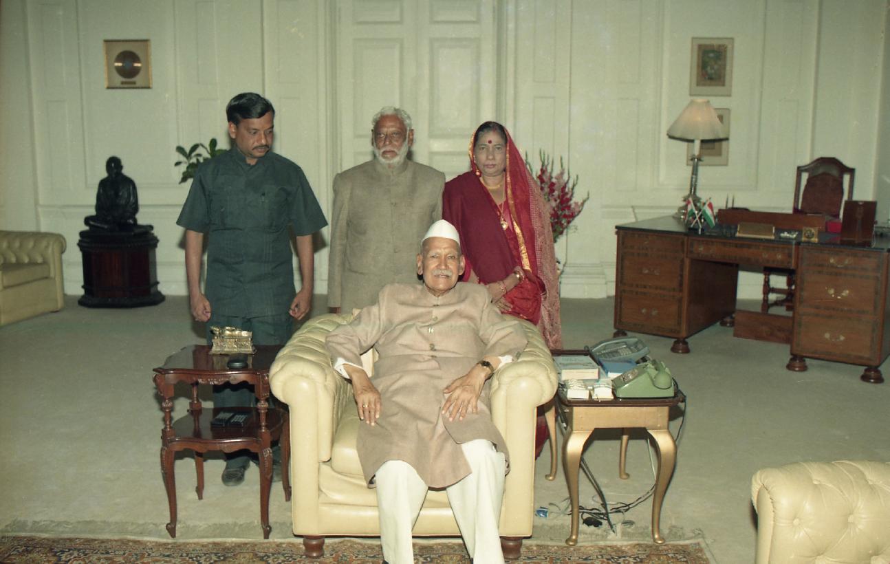 | Caption: | The President of India, Dr. Shankar Dayal Sharma meeting with Shri Dal Chand Jain with others at Rashtrapati Bhavan in New Delhi on February 18, 1997. |