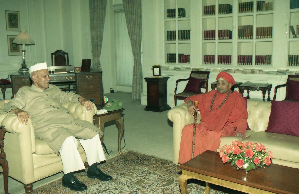 | Caption: | The President of India, Dr. Shankar Dayal Sharma meeting with Swamiji from Karnataka at Rashtrapati Bhavan in New Delhi on February 21, 1997. |